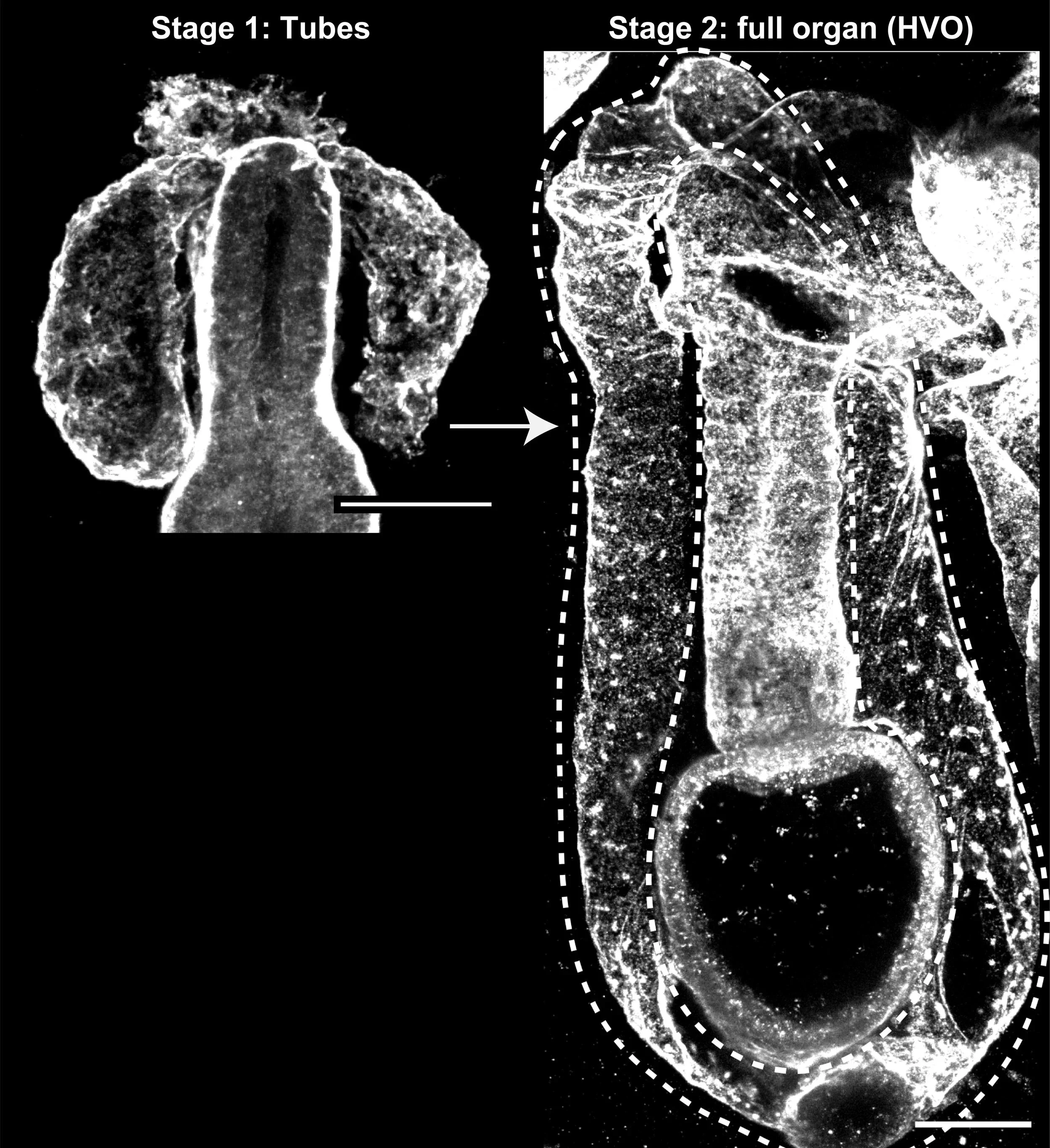 The sea star hydro-vascular organ (HVO) is a simple structure for buoyancy composed of two parallel tubes that elongate to fuse into a vascular structure.